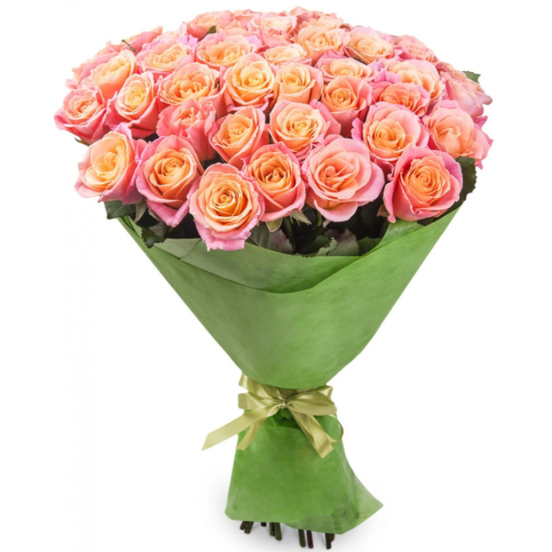 Букет состоит из 45 розовых роз, красивая упаковка, атласная лента.